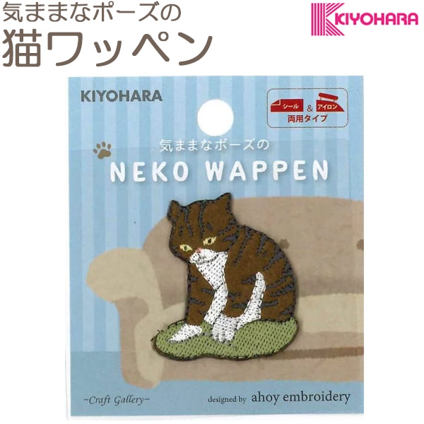 気ままなポーズの猫ワッペン WNK-08 キジトラ シール&アイロン接着 清原 [在庫限り]