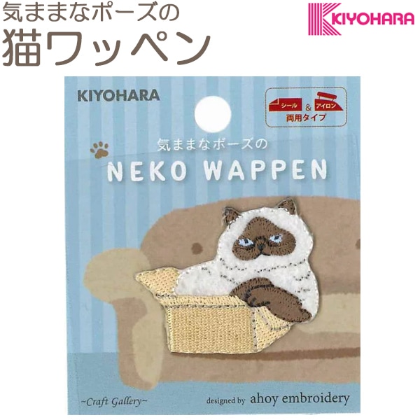 気ままなポーズの猫ワッペン WNK-09 シャム猫 シール&アイロン接着 清原 [在庫限り]