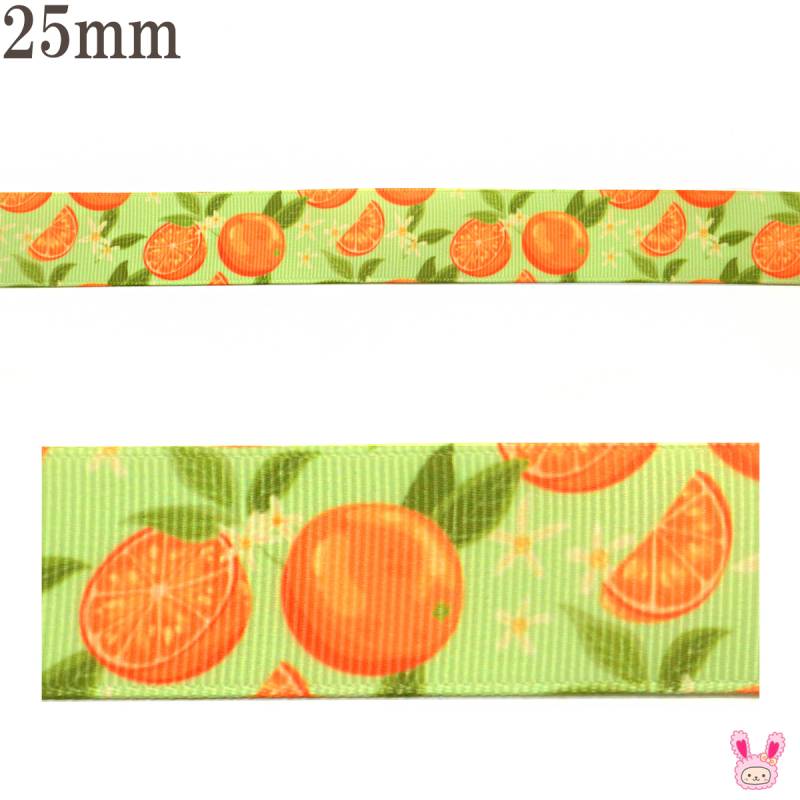 プリントリボン フレッシュなオレンジジュースリボン 幅25mm 1m単位 切り売り (2m以上) [在庫限り]