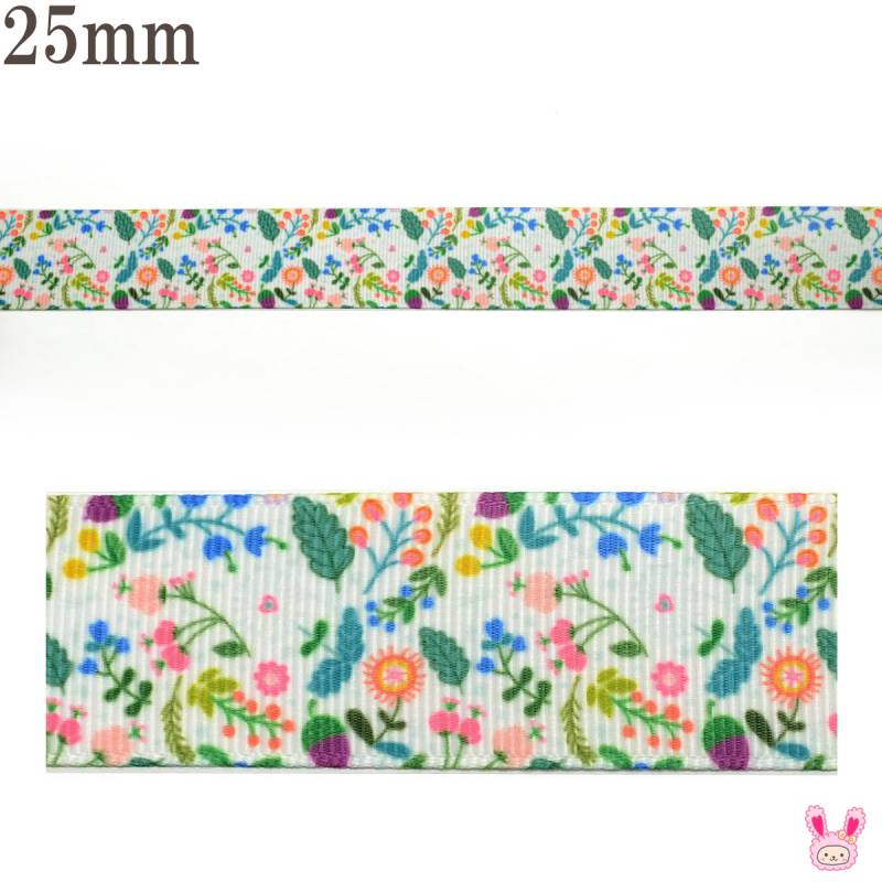 プリントリボン ボタニカルなフレッシュフラワーリボン 幅25mm 2m [在庫限り]