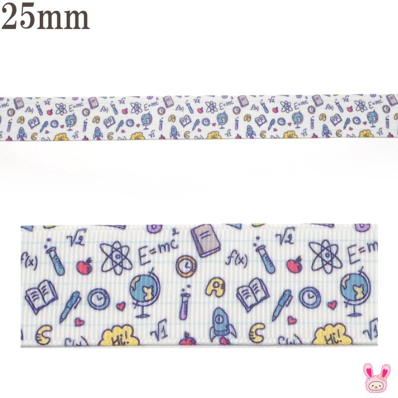プリントリボン ミニミニ学校グッズな柄リボン 幅25mm 2m [在庫限り]