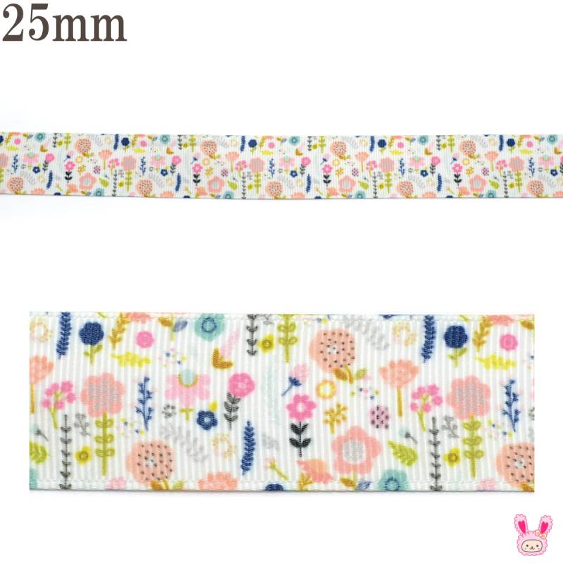 プリントリボン 北欧風まっすぐフラワーリボン 幅25mm 2m [在庫限り]