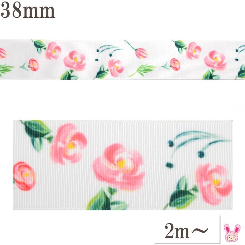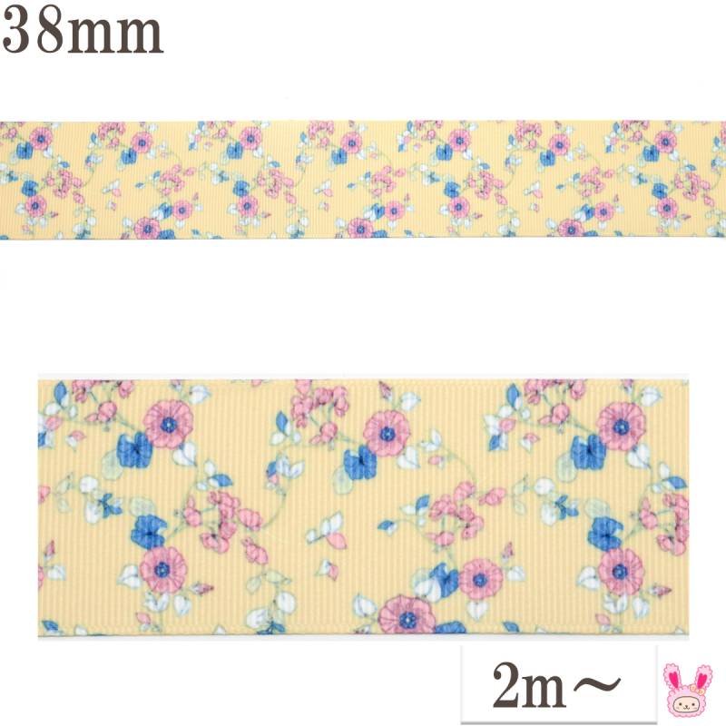 プリントリボン 優美な蝶々リボン 幅38mm 1m単位 切り売り (2m以上) [在庫限り]