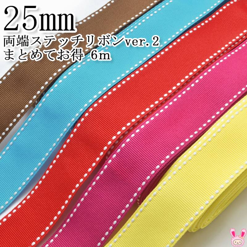 25mm 《まとめてお買い得》 両端ステッチリボン 《ver.2》 追加色 6M [在庫限り]