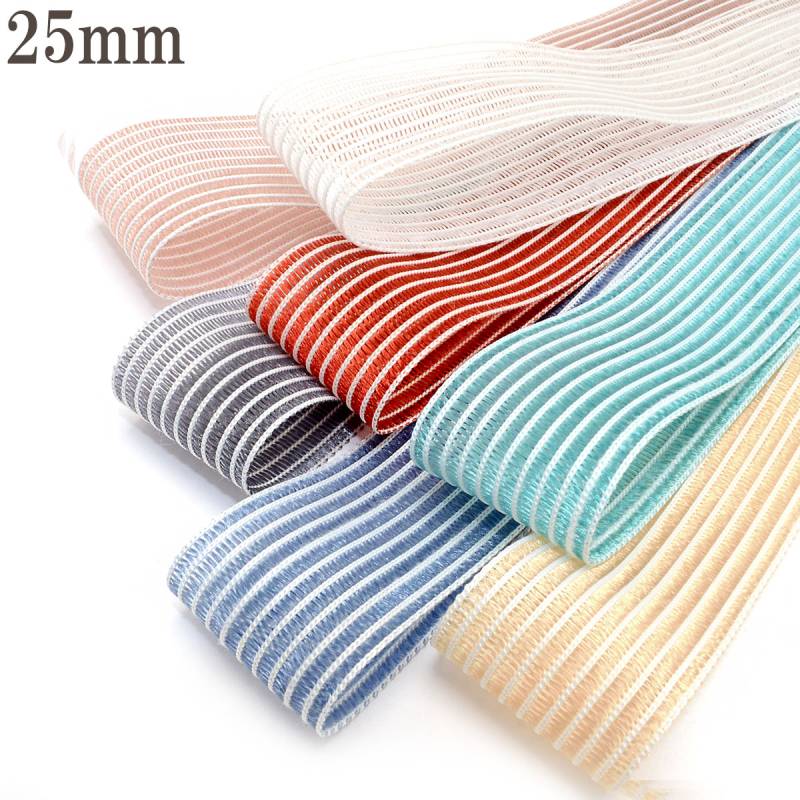 編み込みストライプのオーガンジーリボン 幅25mm 1m単位 切り売り (2m以上)