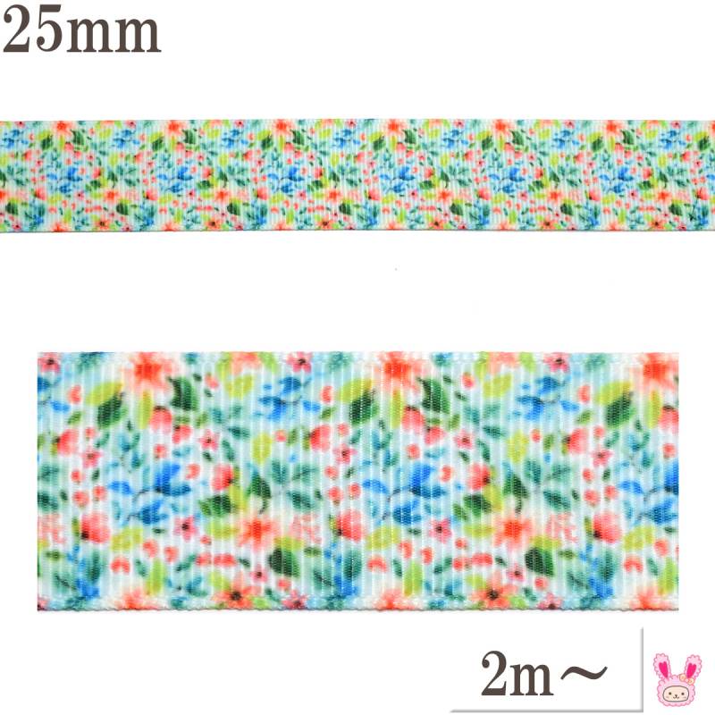 プリントリボン カラフルフラワーワールドリボン 幅25mm 1m単位 切り売り (2m以上) ★