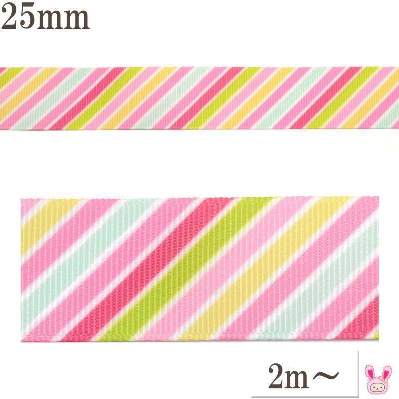 プリントリボン ハッピーカラフルストライプリボン 幅25mm 1m単位 切り売り (2m以上) ★