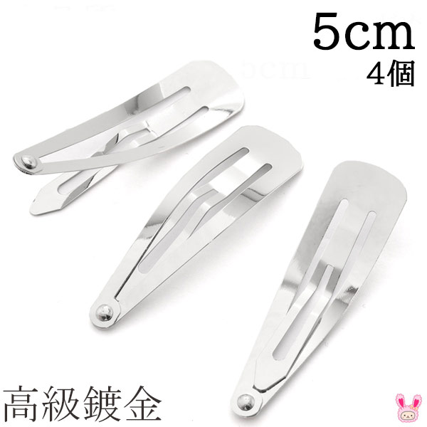 高級鍍金 パッチンどめ 5cm シルバー 韓国製 4個セット 髪留め パッチンピン ヘアピン ぱっちん [在庫限り]