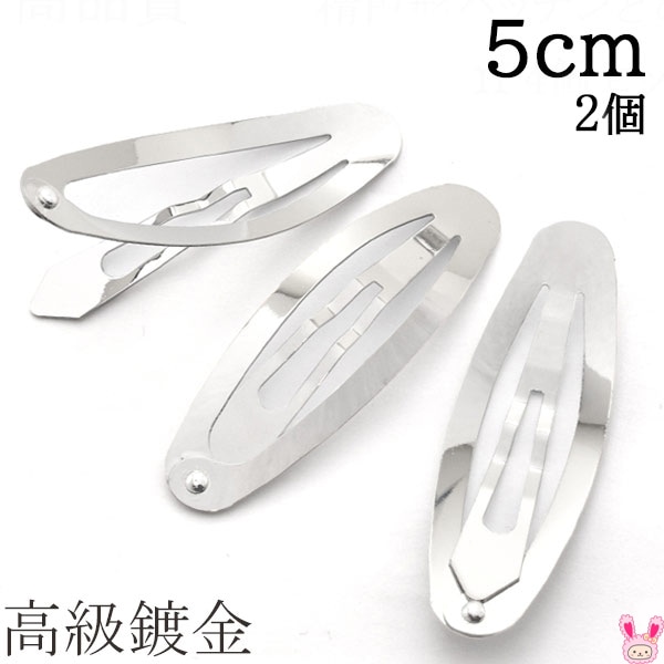 高級鍍金 楕円形パッチンどめ 5cm シルバー 韓国製 2個セット 髪留め パッチンピン ヘアピン ぱっちん [在庫限り]