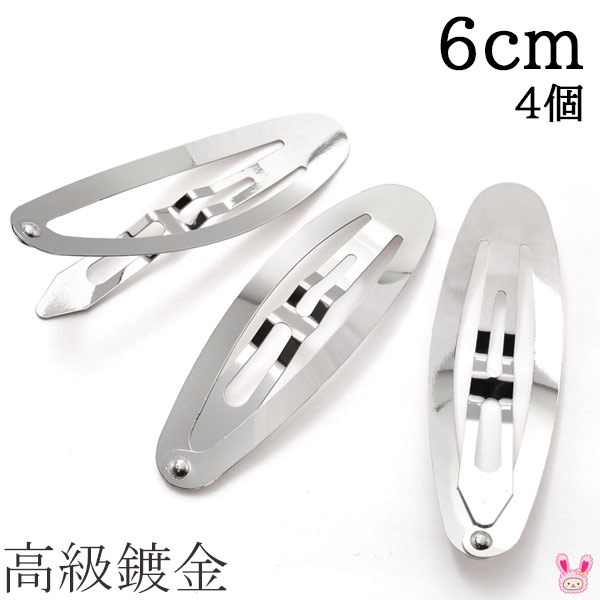高級鍍金 楕円形パッチンどめ 6cm シルバー 韓国製 4個セット 髪留め パッチンピン ヘアピン ぱっちん [在庫限り]