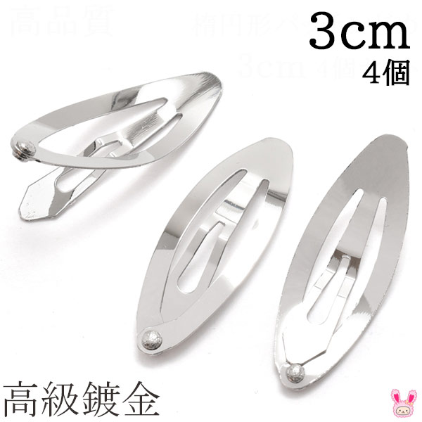 高級鍍金 楕円形パッチンどめ 3cm シルバー 韓国製 4個セット 髪留め パッチンピン ヘアピン ぱっちん [在庫限り]