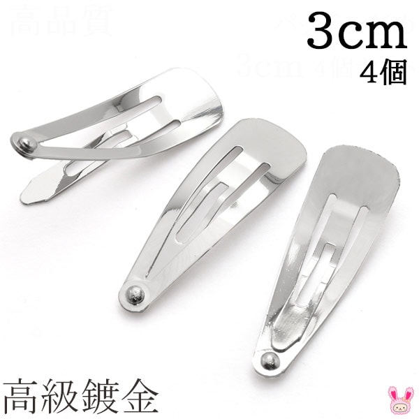 高級鍍金 パッチンどめ 3cm シルバー 韓国製 4個セット 髪留め パッチンピン ヘアピン ぱっちん [在庫限り]