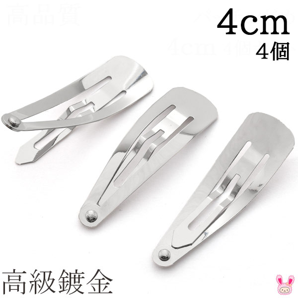 高級鍍金 パッチンどめ 4cm シルバー 韓国製 4個セット 髪留め パッチンピン ヘアピン ぱっちん [在庫限り]