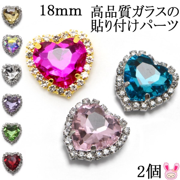 アクセサリーパーツ ハート型ガラスストーンパーツ 2個 [在庫限り]