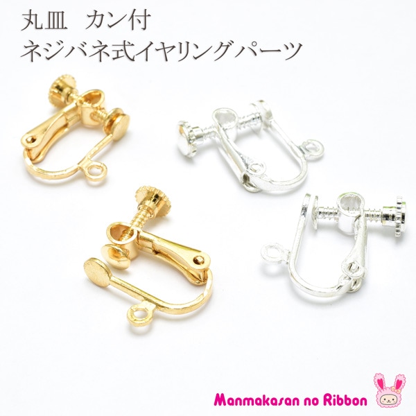 丸皿 カン付イヤリングパーツ 金具 ネジバネ式 韓国 1セット [在庫限り]