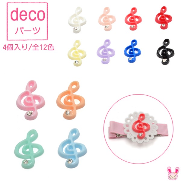 デコパーツ ホワイトストーン付*カラーのト音記号 4個 [在庫限り][SALE価格]