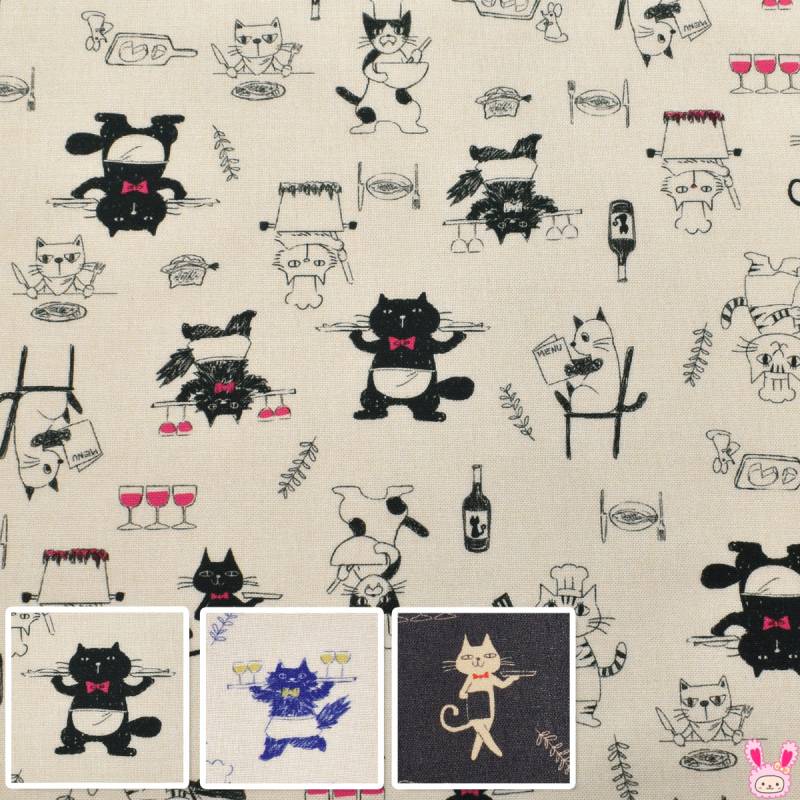 ねこのレストラン シーチング生地 PT-150-V0 Monti prism (50cm以上10cm単位切り売り)