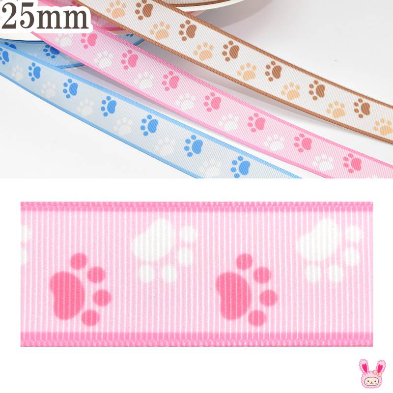 プリントリボン バイカラーの犬猫肉球リボン 幅25mm 1m単位 切り売り (3m以上)